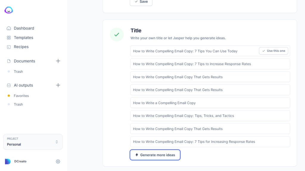 Wow, look at all of those ideas! As you can see, Jasper AI is a great tool for generating blog post ideas.