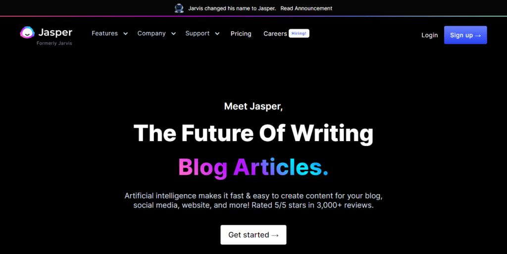 If you're familiar with the name Jarvis, then you'll be sad to know that it has been rebranded to Jasper AI. In starting days, its named as Conversion AI, Later its rebranded again to Jarvis. Now its named as Jasper due to copyright issues claimed by marvel.