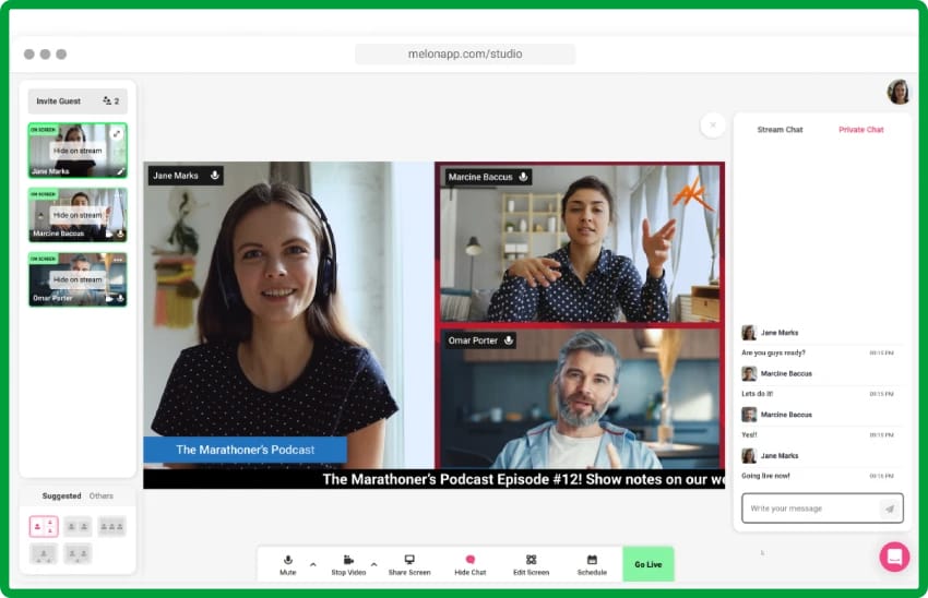 - If you're camera shy when it comes to going live, or just want the freedom of pre-recorded content for your podcast and YouTube channel then Melon is an excellent option.
