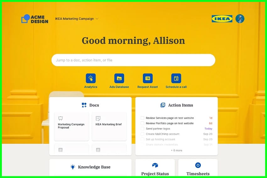 SuperOkay is the solution. Their easy-to-use platform offers customizable client portals so that you can share project links, assets, connected apps, and more with your stakeholders in a way that is safe and secure.