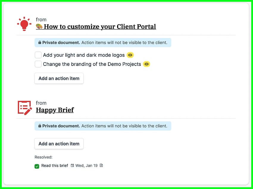 Action items can help keep you and your clients organized.