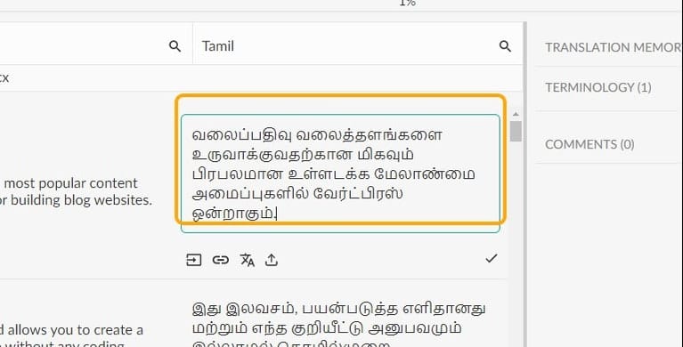 The WordPress plugin lets you access a glossary, translation memory and the overlay editor version of TextUnited.