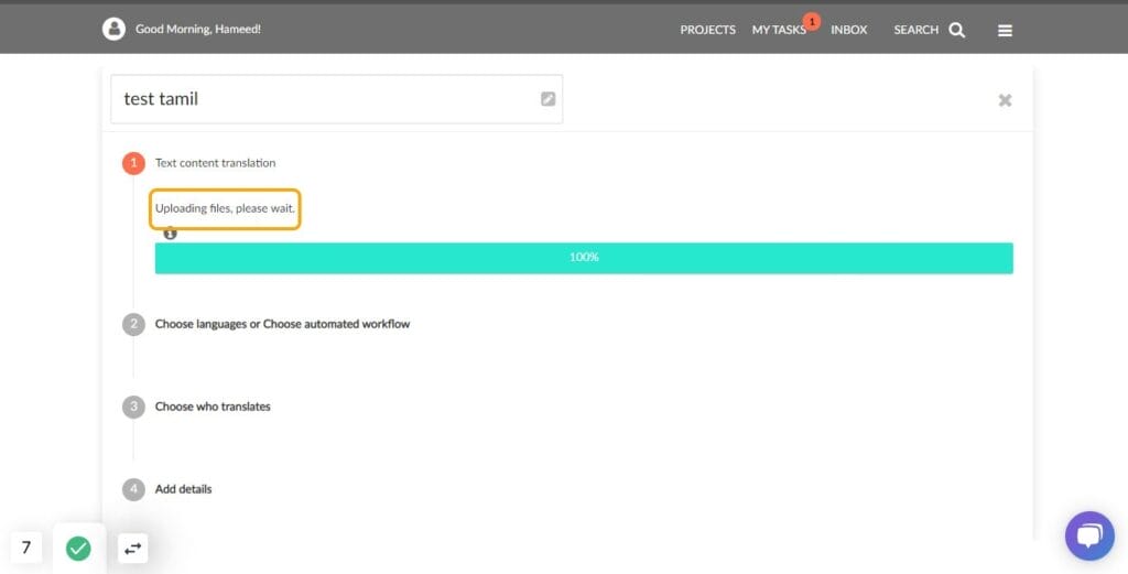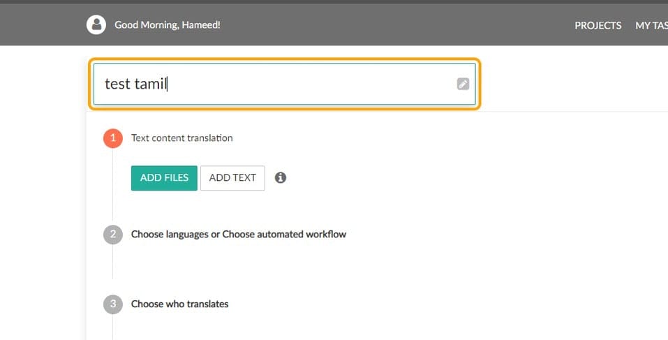 5. Type any project name, I am typing "test Tamil"