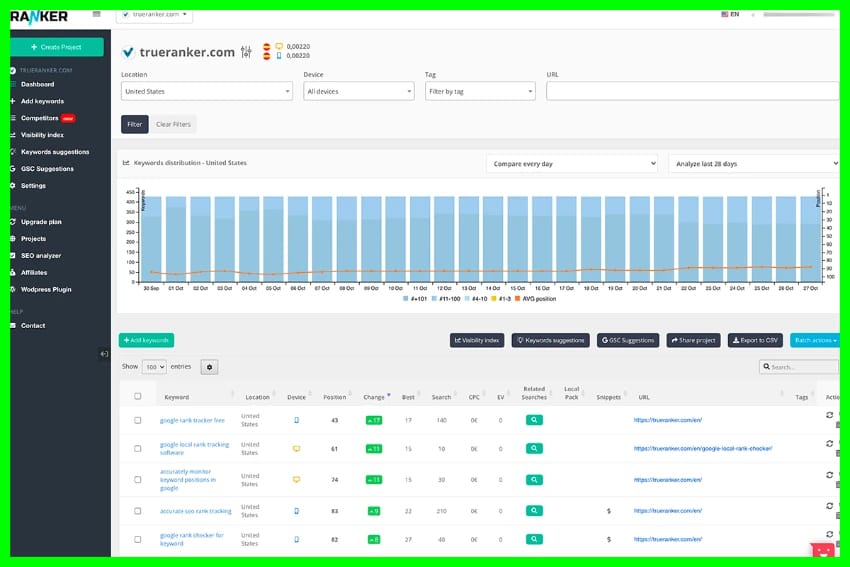 TrueRanker is an online tool that enables you to monitor the SEO performance of any website, whether it’s your own or a competitor’s.