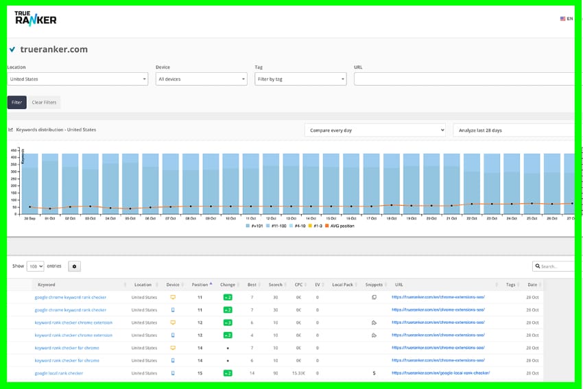 TrueRanker makes it easy to track your keyword ranking and provides actionable insights so that you can improve your SEO strategy.