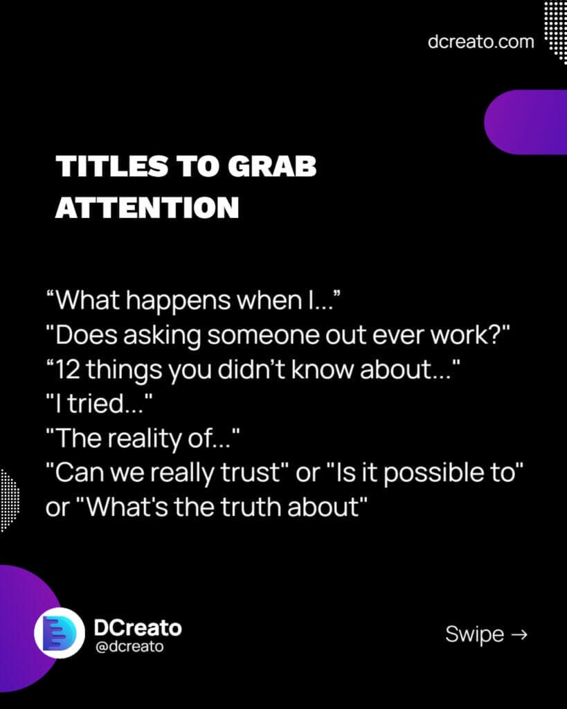 If you come across as desperate or gimmicky, people will be less likely to take your article seriously. With that said, here are a few tips for coming up with attention-grabbing headlines: