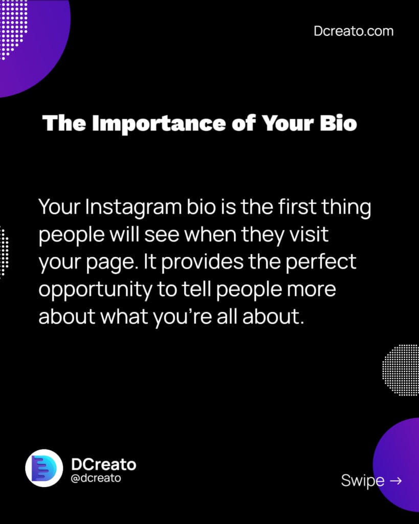 It’s important that your Instagram bio reflects who you are, what matters most to you, and any other information that would be beneficial for someone considering following or interacting with your content.