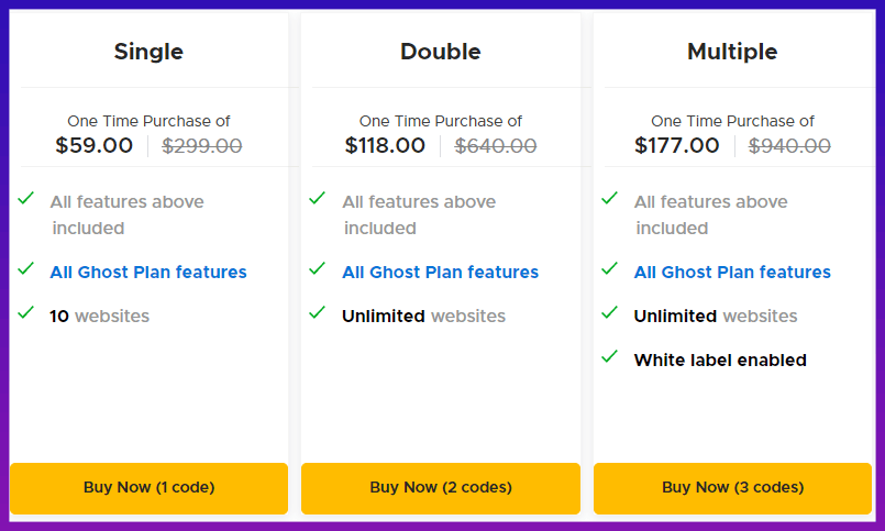 But currently this plugin is available for lifetime deal in Appsumo starting from 59$ for 10 Websites, 118$ for unlimited and 177$ for unlimited sites with white label option.