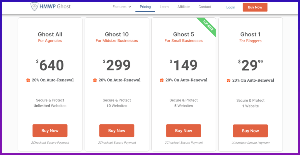 Hide My WP Ghost is the ultimate WordPress Security Plugin that you need! This plugin solves all of the problems related to website hacking or spamming - from simple email alerts when there's been suspicious activity on your site (no matter how small) that may require attention from a human expert rather than just being blocked automatically by software alone, this plugin has everything you could possibly ask for in terms of protecting your brand online. With four different pricing plans starting at 30$, this plugin will suit any budget with its lifetime deal currently available through Appsumo.