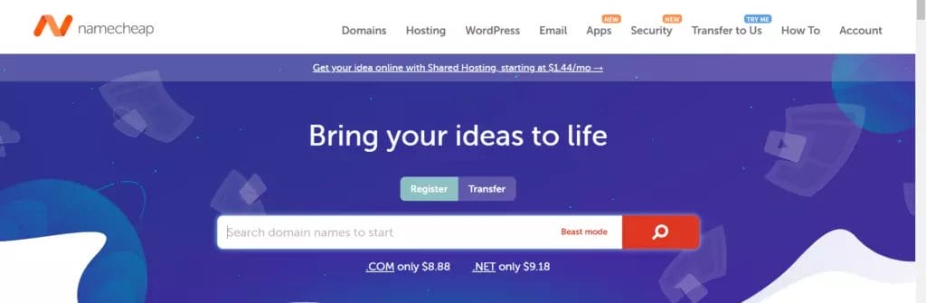 NameCheap is an easy-to-use platform that has held its own. With NameCheap, you can register your domain, transfer a domain, get a privacy package to protect your personal data, and more.
